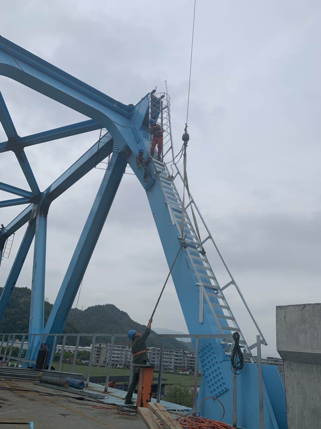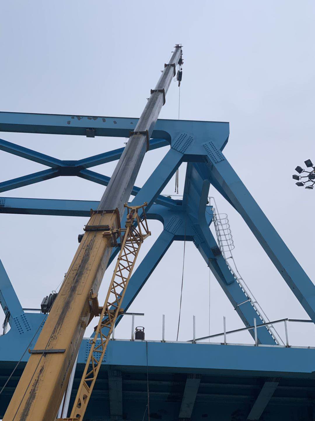 金臺(tái)64米鋼桁梁正在吊裝附屬件欄桿、爬梯