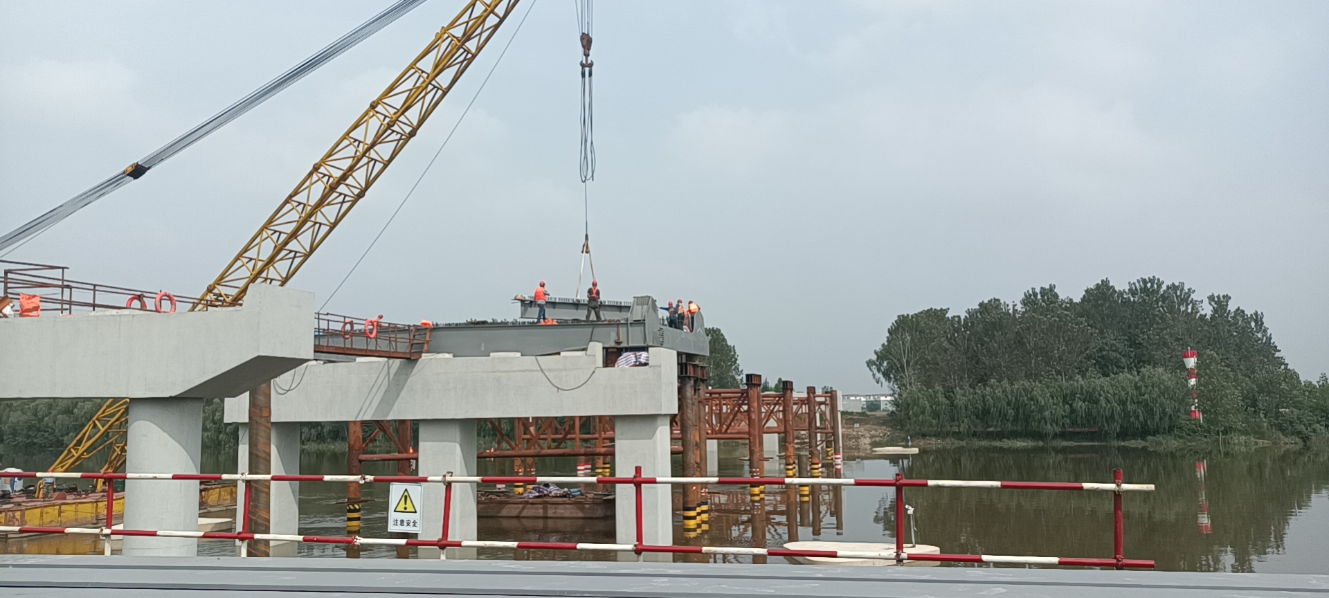 2021年9月3日,濟徐高速公路順河互通連接線復新河大橋工程施工現(xiàn)場看到,江蘇三工鋼橋的建設者們正在進行架梁的施工。而根據(jù)計劃,預計今年底,復新河大橋就將建成。